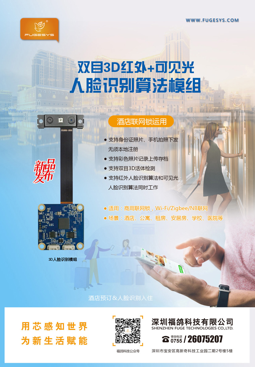 双目3D红外+可见光人脸识别算法模组—酒店联网锁运用