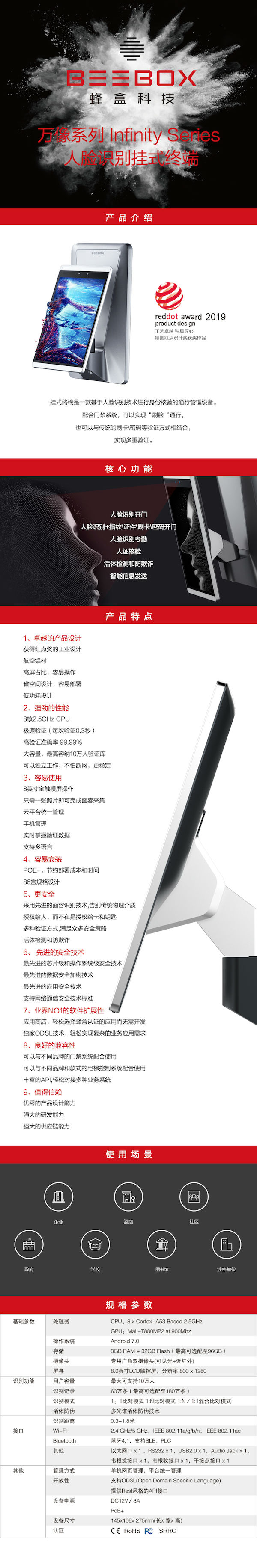 蜂盒科技 万像系列 人脸识别门禁 签到 考勤管理