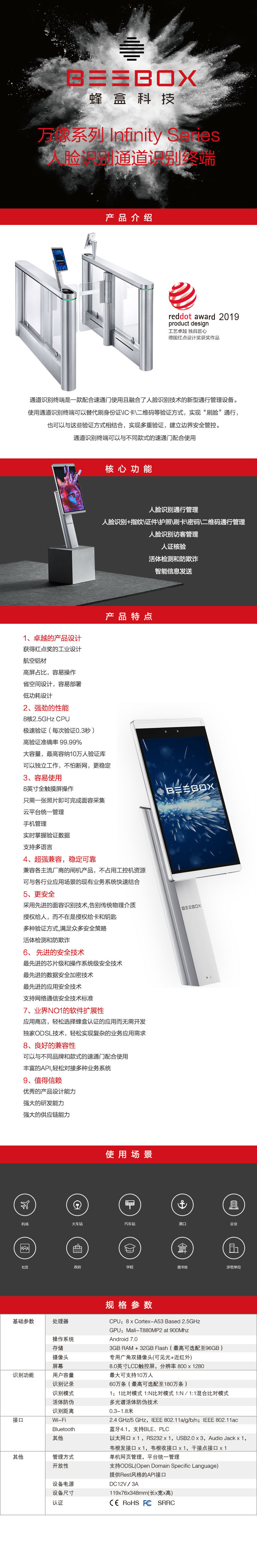 蜂盒科技万像系列 人脸识别通道识别终端 闸机终端 通行管理 人证核验 人脸识别闸机终端