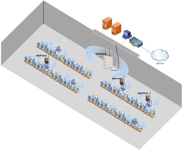 工厂生产车间、生产线配备有大量的笔记本、工作站、手持设备等智能上网设备,都需要连接控制中心和互联网,同时,车间内设备和空间繁杂,增加交换机和布线并不方便。