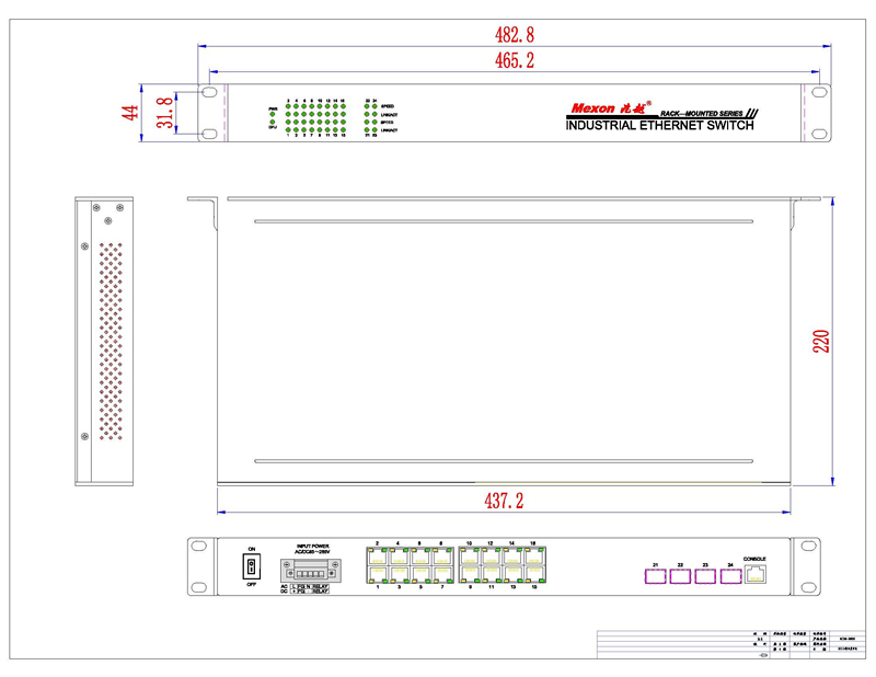 外形尺寸 | 宽×高×深:482.8×44×220mm |
