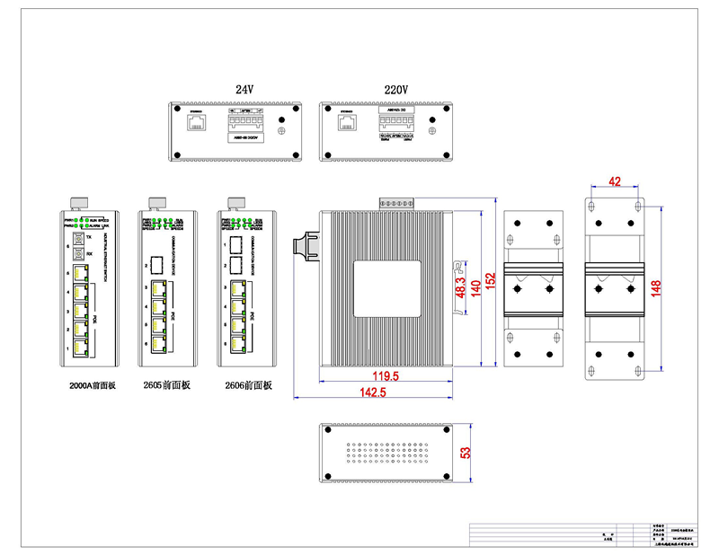 指示灯 | 电源指示:PWR1、PWR2,接口灯指示:Link、SPEED、ALarm、Run |