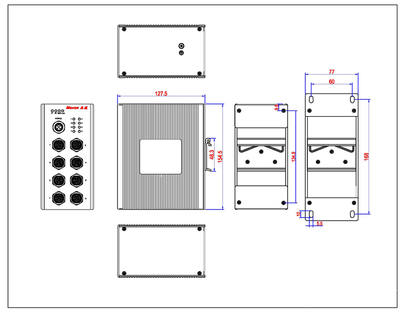 MIES-5708 | 8个10/100/1000M M12接口,支持网管,电压:DC12/24V,AC/DC85~265V可选 |