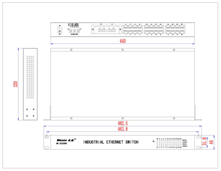 ME-S2226 网管型工业以太网交换机,提供24个10/100M自适应以太网网口,2个100M 或1000M光口,是一款以太网接入一体的综合通信单元,专门为电力配网自动化、工业自动化、煤矿监控、交通等行业数据通信领域而设计的工业以太网交换机。提供全线速无阻塞转发,提供全双工下的IEEE802.3x流量控制和半双工模式下的背压式流量控制,ME-S2226可以组建一个快速恢复的自愈环网,自愈时间小于20ms,支持对环路的自动检测和倒换,ME-S2226 提供丰富的网管功能,支持MR-ring快速环网,兼容STP/RSTP/MSTP,基于端口的VLAN、基于802.1Q的VLAN、QOS、IGMP Snooping、广播风暴抑制、端口聚合、端口镜像、端口状态管理、SNMP、NTP对时等。目前该产品广泛应用于智能交通,能源风电,管廊隧道,智能变电站等工业恶劣环境。