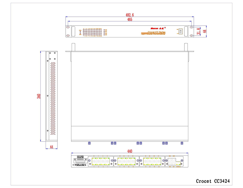 Cronet CC-3424 | 24个10/100M电口,Layer3 工业以太网交换机,机架式安装 |