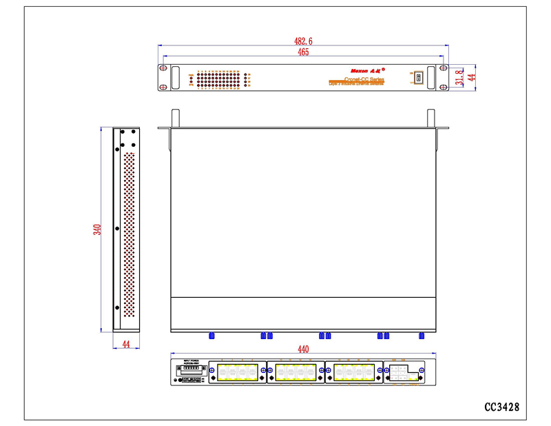 Cronet CC-3228G | 三层机架式网管型交换机机箱,含3个1000M扩展插槽,1个4端口1000M扩展插槽,最多可配置28个1000M端口,输入电压AC/DC85~265V |