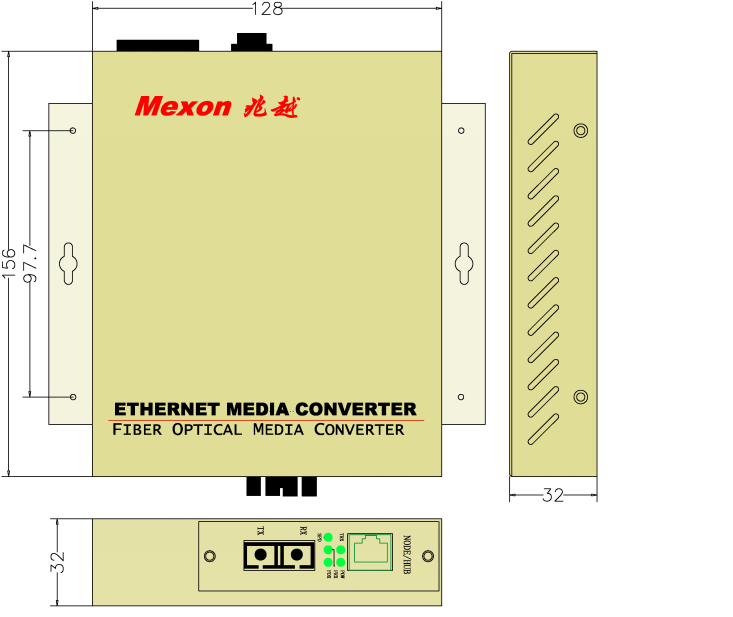 外形尺寸 | 宽×高×深:128×32×156mm |