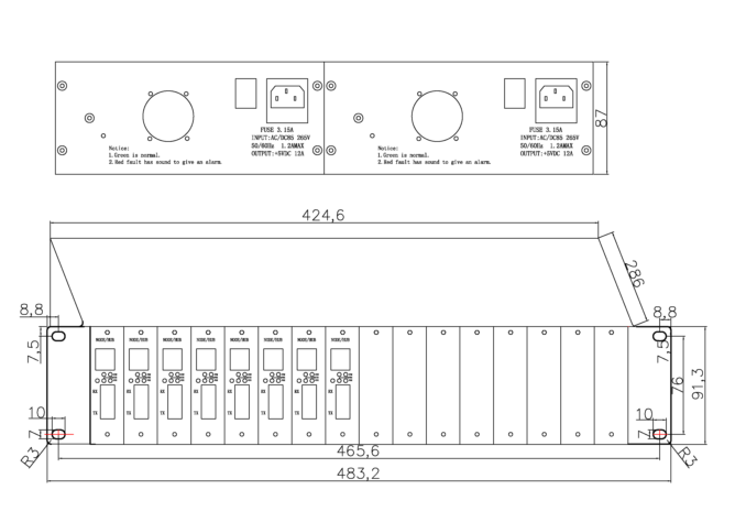 电源、四路/八路光收、发,数据收、发,指示灯显示