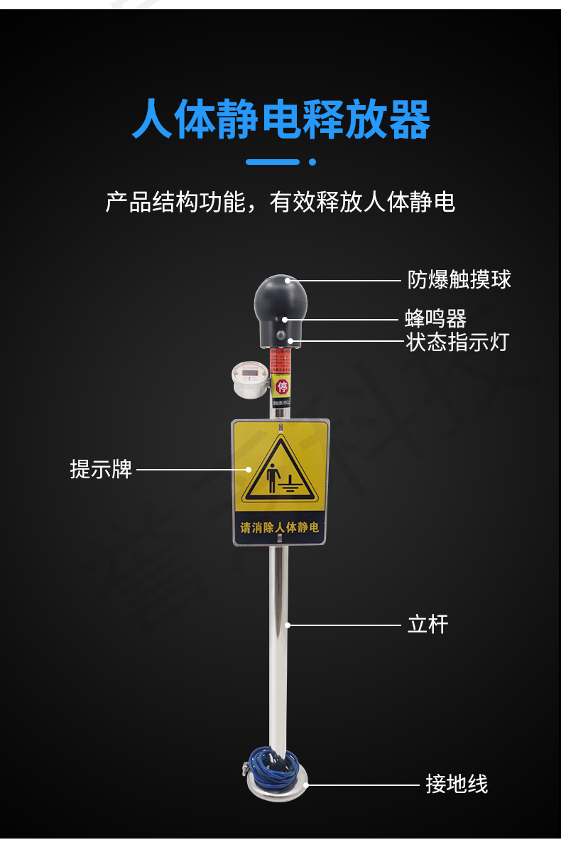 YF-PSA-D数显人体静电释放报警器声光带数显防爆人体静电释放球