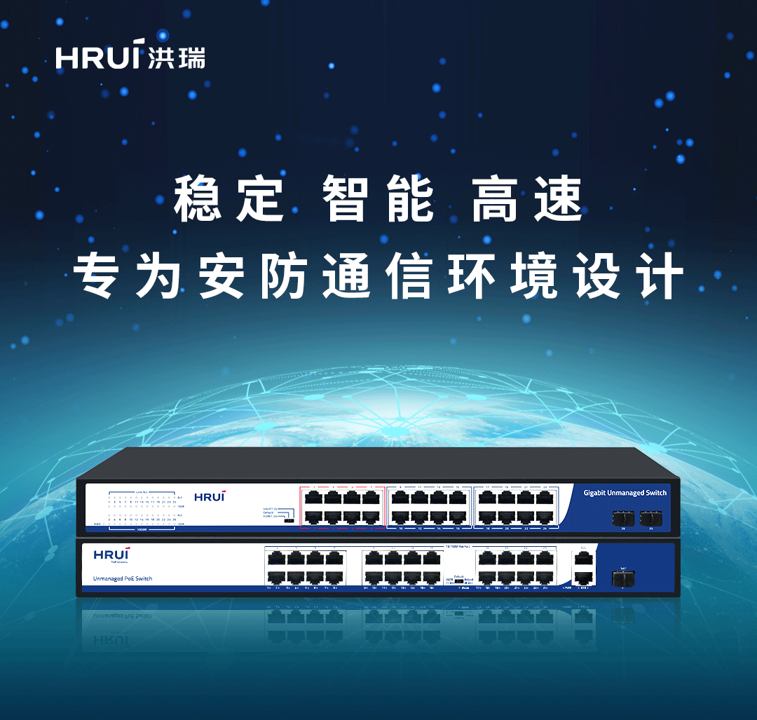 HRUI洪瑞全新推出的26口全千兆智能型以太网交换机(HR-SWG10242S)、27口百千兆PoE交换机(HR901-AF-2421GS-400),是专为安防通信使用环境研发设计的两款高性能以太网交换机。整机采用全金属外壳,坚固耐用,散热性能更强,防雷防静电设计,适应宽温环境工作,保证交换机长时间稳定运行;丰富密集的端口,非常适用于网络终端(如无线AP、NVR、网络摄像机)密集的安防通信环境;百千兆、全千兆高速网络连接,光电混合传输,大流量,高带宽,大缓存,助您畅享高清网络视频监控,高速流畅数据传输。