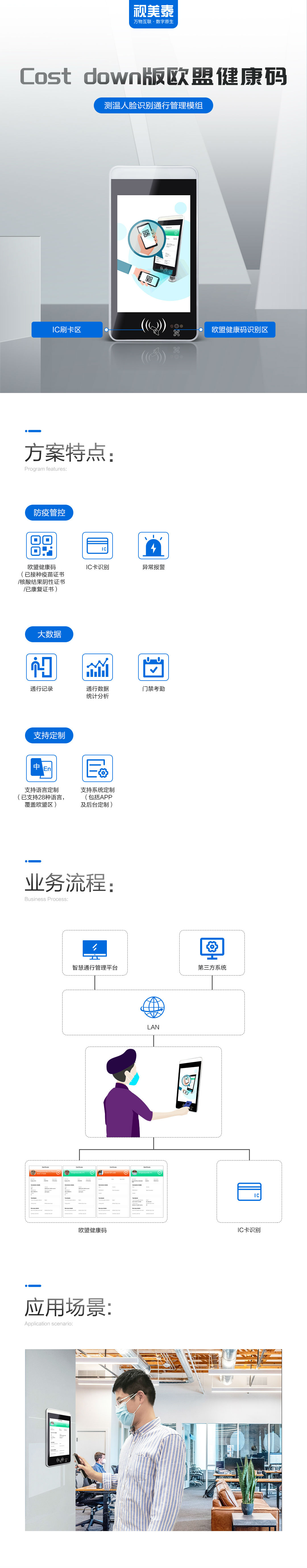 cost-down欧盟健康码测温人脸识别通行管理模组