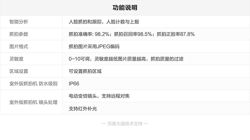 人脸抓拍采用深度学习算法实现人脸检测、跟踪、去重、质量检测等功能,可支持典型场景中同框30人脸抓拍,准确率97.5%。