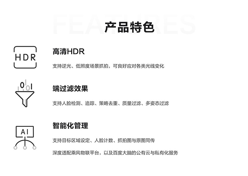 深度适配百度大脑人脸识别服务,如公有云与人脸私有化部署等。