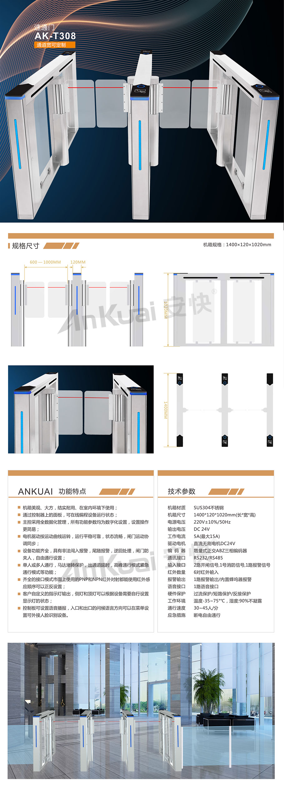 5.单人或多人通行,马达堵转保护,出通道延时,高峰通行模式紧急通行模式等功能