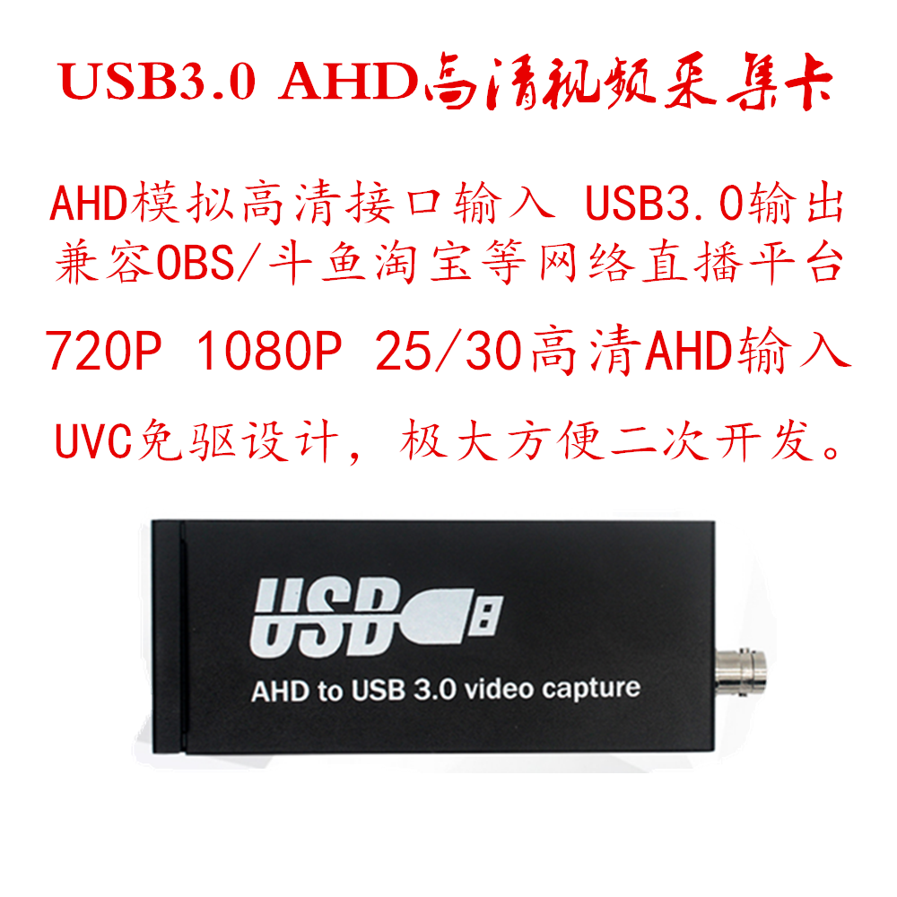 自主研发AHD转USB3.0转换盒,支持AHD 720P 1080P 25/30 摄像机输入,兼容各类摄像机。