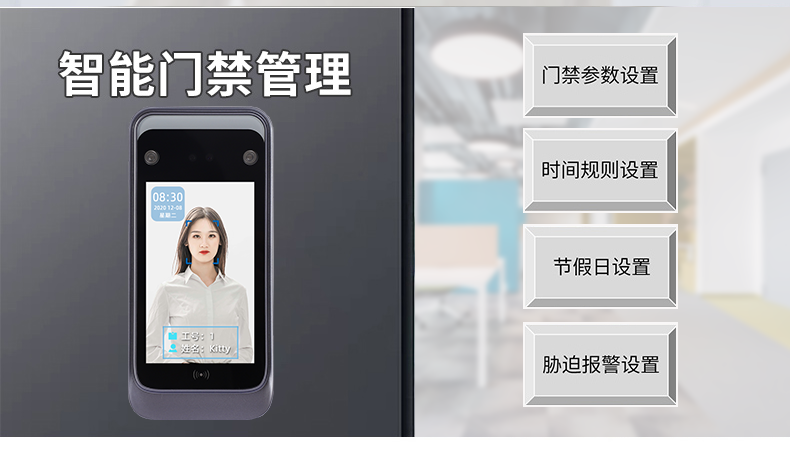 适用于办公楼、园区、校园、社区、小区楼宇等场所的人脸识别门禁、人脸识别通道闸、人脸识别考勤。