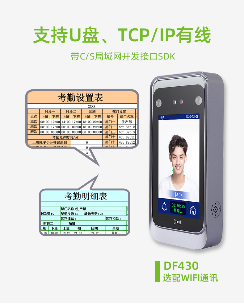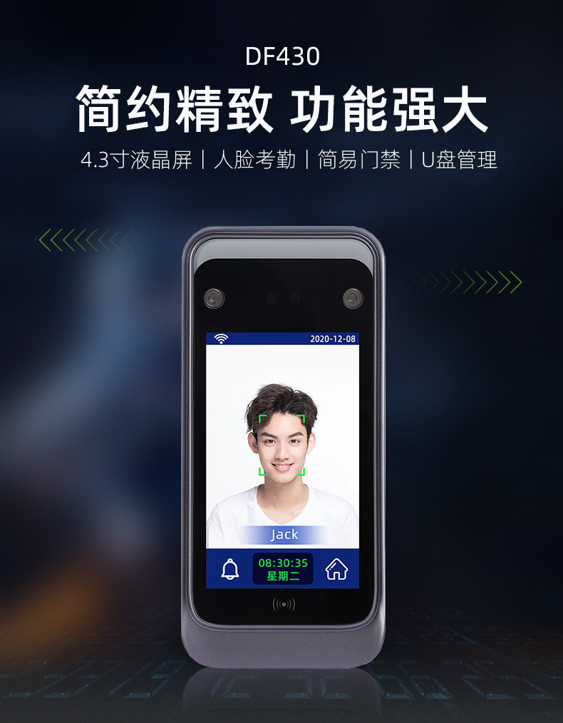 东为 人面刷卡考勤打卡门禁一体机 语音播报/多人识别/免软件安装/自动生成报表/U盘下载 门铃防拆报警 DF430