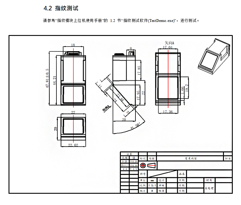 算法性能优异:DW611D 模块算法根据成像原理优化设计,具有自学习功能。算法对变形、质量差指纹均有较好的校正和容错性能;