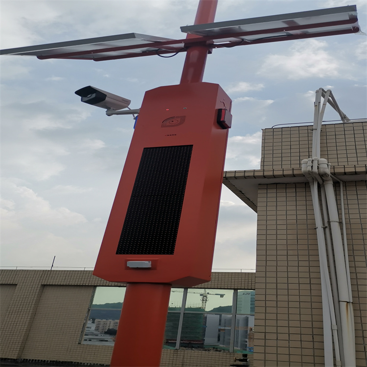 功能: 1、进入需要警示位置入口时自动进行语音提醒如:“水深危险,禁止钓鱼,爱护环境,人人有责”等(语音可录制更换)。 2、同时LED显示屏自动显示提醒文字如: “水深危险,禁止钓鱼,爱护环境,人人有责”等。 3、摄像机同时触发录像,保存在摄像机上。 4、触发录像通过手机或电脑专用软件进行查看或下载保存。 5、采用太阳能方式供电,阴雨天气工作/待机七天以上。 6、太阳能控制器采用MMPT(功率点跟踪)工作状态,数字化技术设计,全自动运行模式。 7、路灯级高容量12V锂电池,反复冲放电,使用寿命长,保证高温、极寒天气下正常使用。 8、多重的电子保护功能。 9、支持有线网线、4G、WIFI远程传输。 10、支持云服务器、手机APP管理。 11、支持手机蓝牙连接,播放手机语音信息。12、专用定制MP3播放模块,语音宣传内容支持9段存储。13、支持一键遥控,声音大小/上一曲/下一曲/蓝牙直连/开关机。