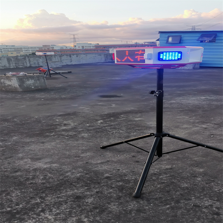 1、 便携式折叠支架,固定位置安放。可升级成车载吸盘,安装在车顶,移动宣传提醒警示。