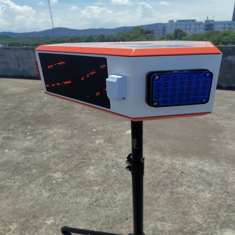 太阳能语音播放器(移动款),通过置放于人流/车流通行的卡口位置,移动触发(微波/红外)工作模式,当感应到移动的人或物体时,高音喇叭立即提示:“前方道路施工,请绕道行驶,给您带来的不便,敬请谅解”,同时红蓝色警示灯开始暴(频)闪提示。