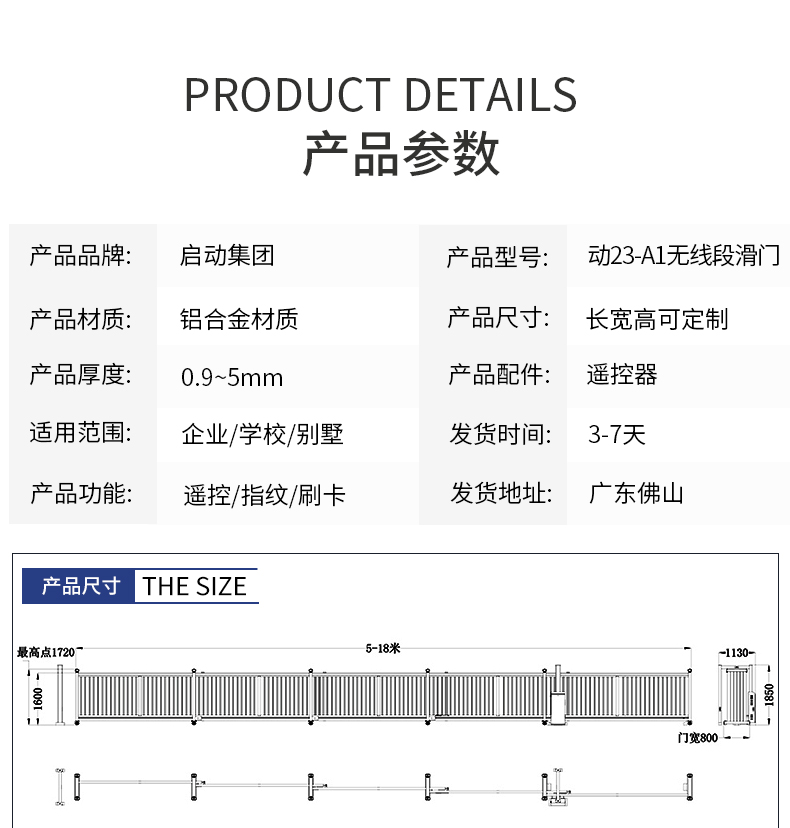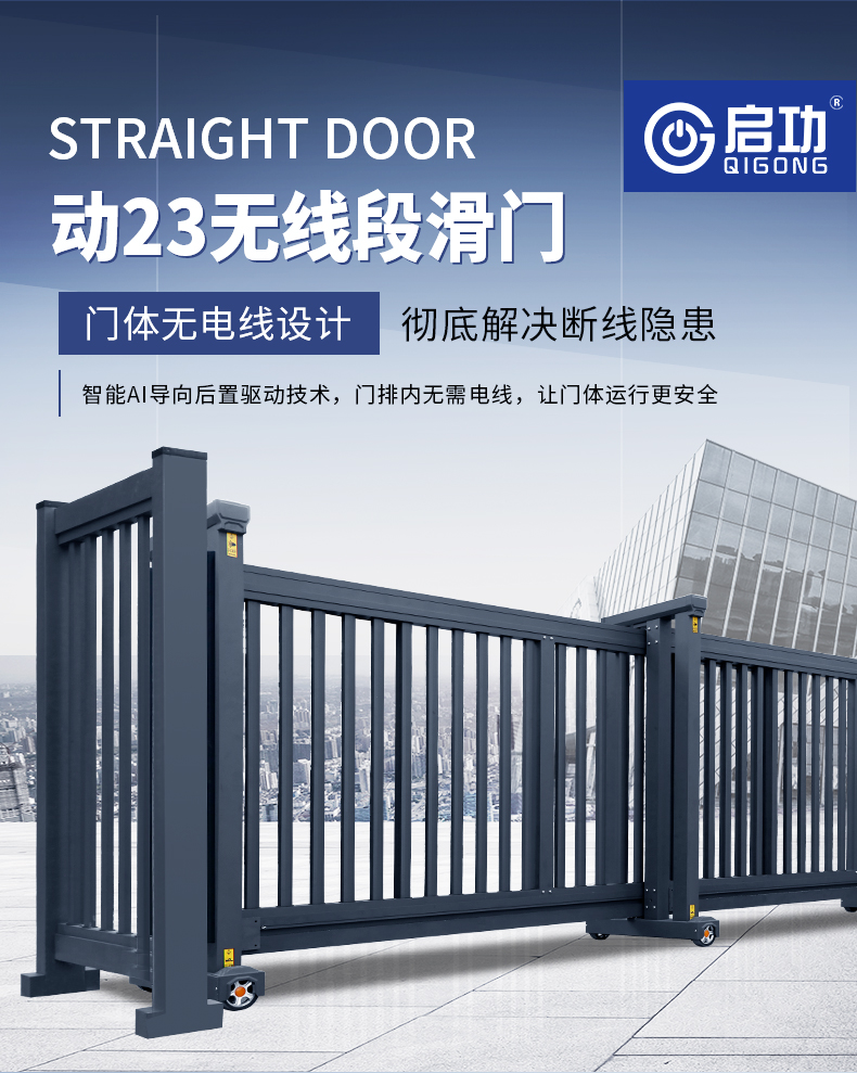 启功电动段滑门遥控铝合金直线门平移门无轨伸缩大门学校工厂分段自动门 段滑门动23-A1