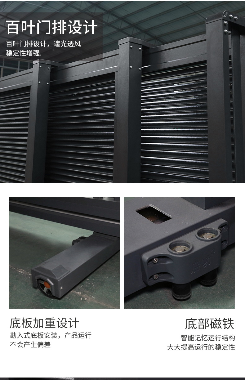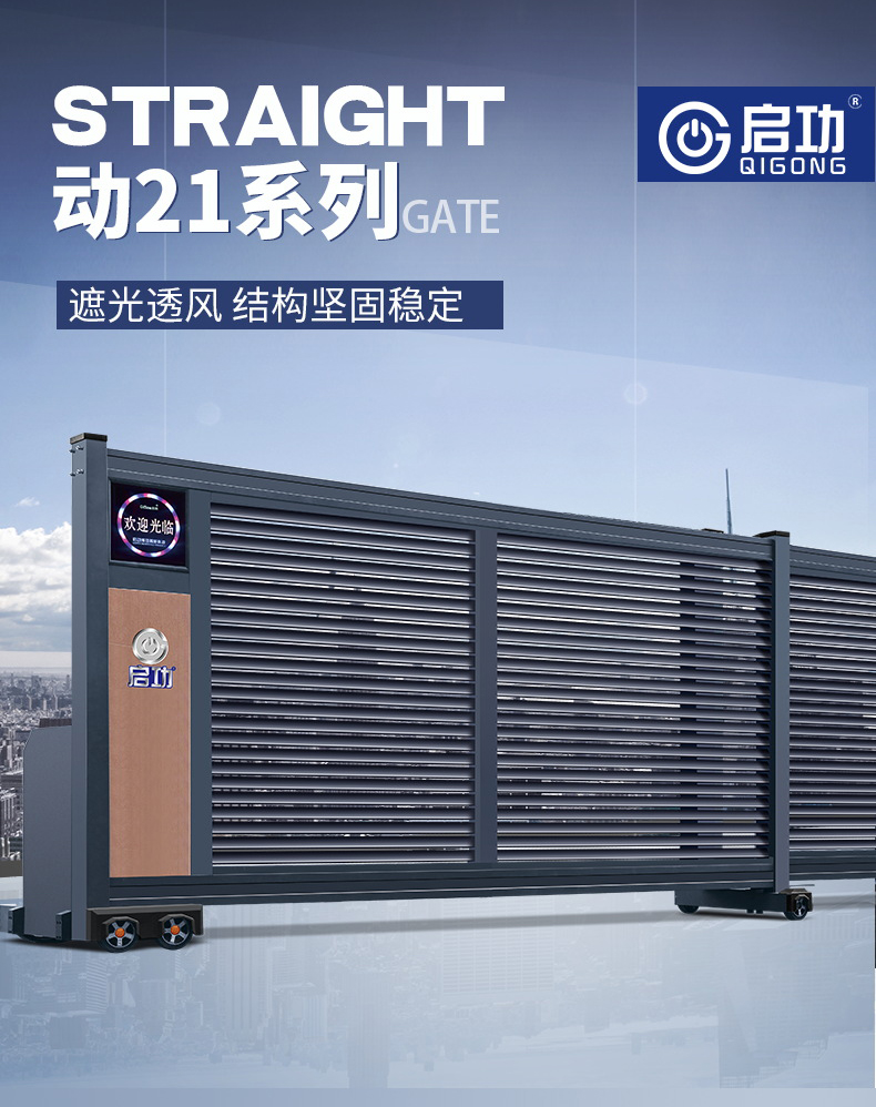 启功动21智能车牌识别铝合金工业门厂区电动悬浮门直线门百叶门可定制