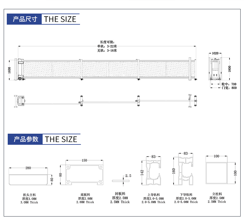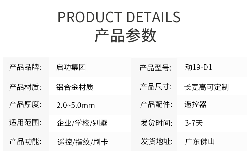 启功动19-D1智能车牌识别封板段滑门定制悬浮门直线门可加装红外保护装置