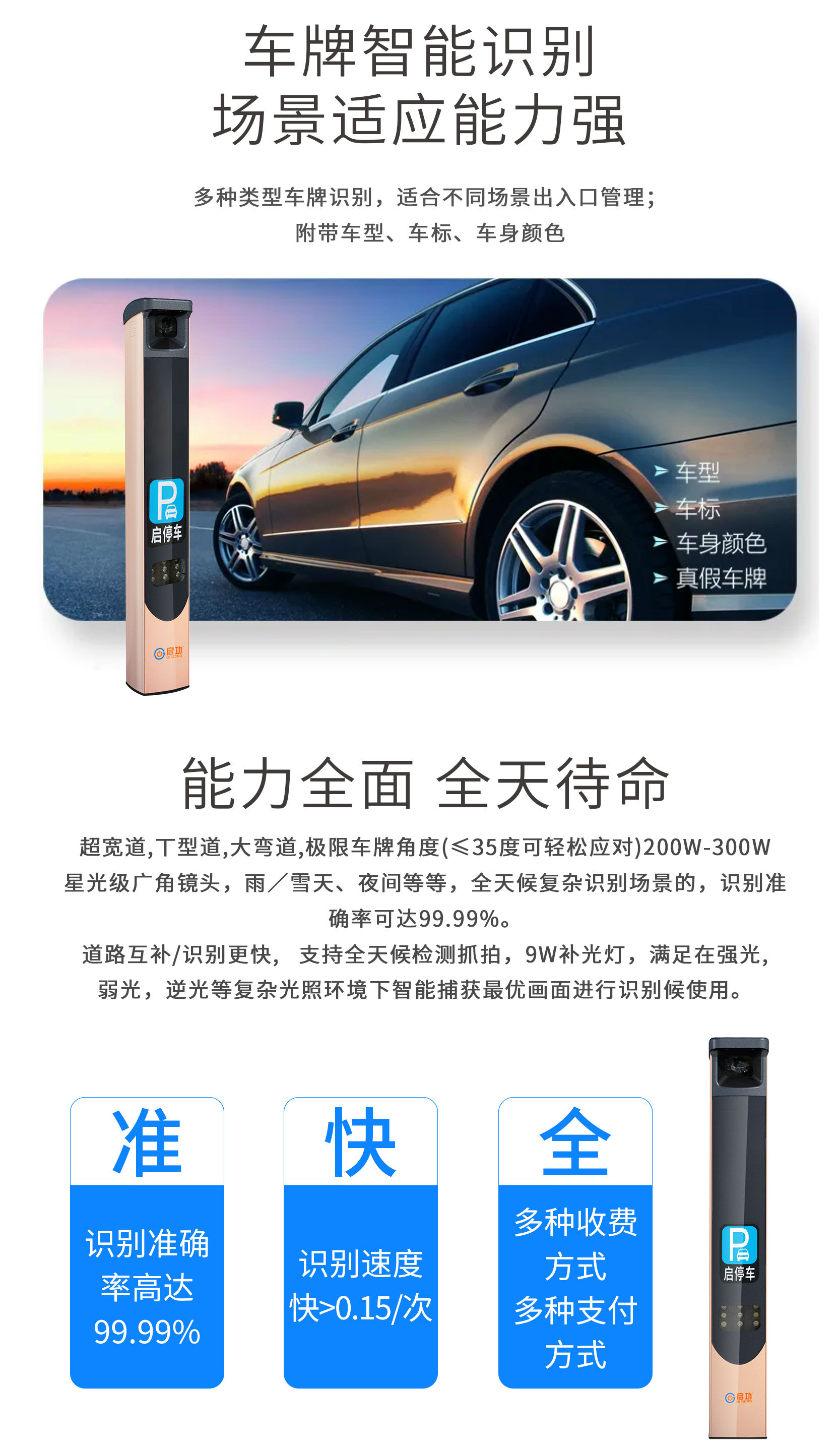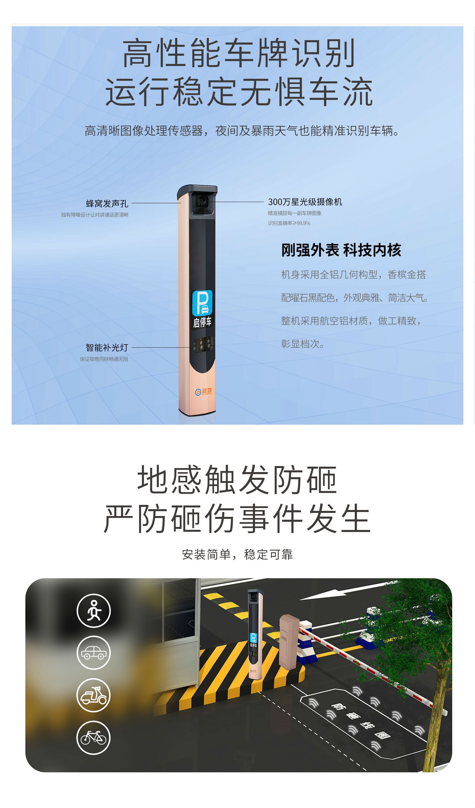 启功QG-CP-2103小区大门无人值守智能车牌识别道闸一体机可脱机运行