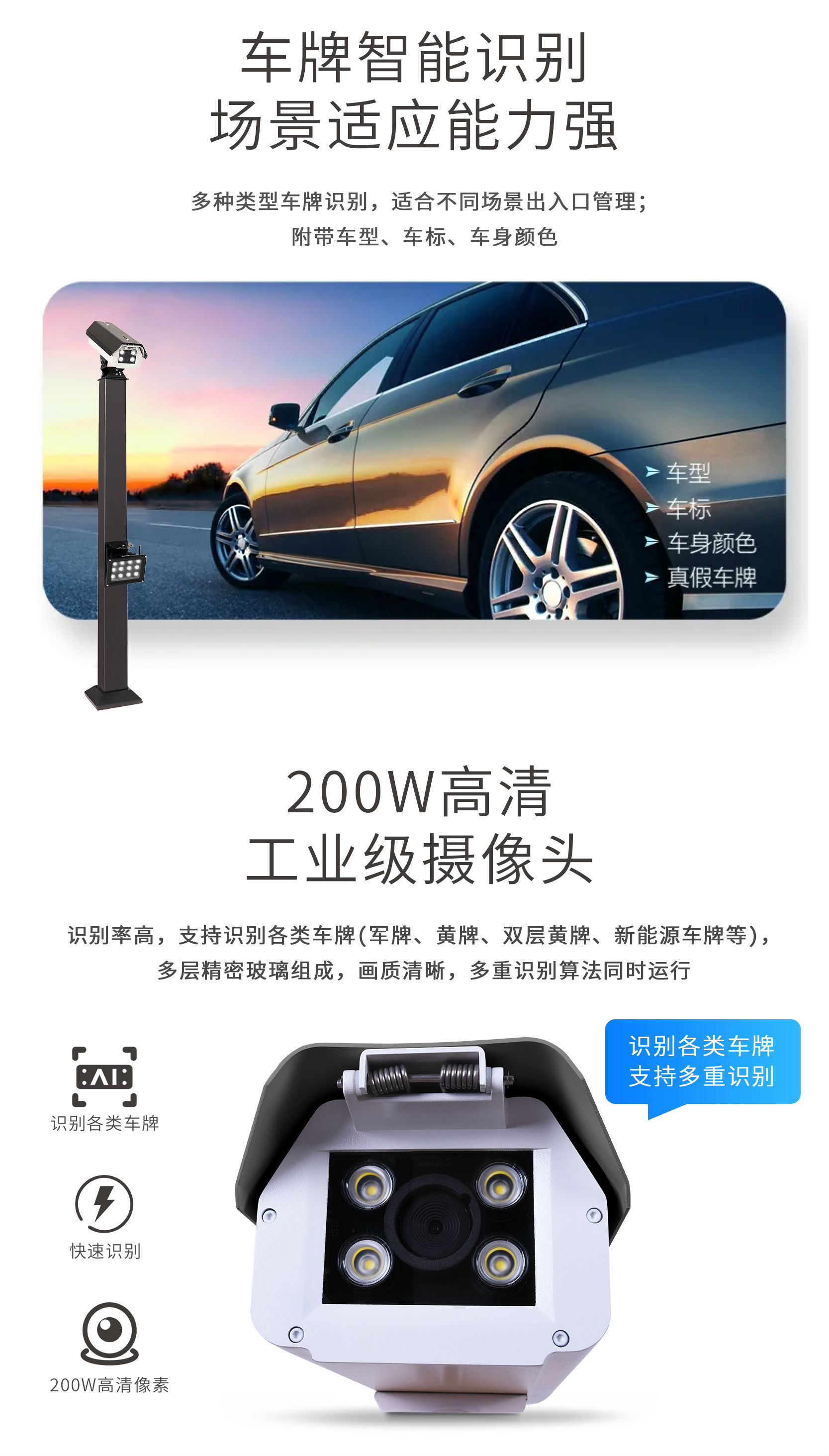 启功QG-Z-辅助相机 智能车牌识别道闸一体机整体解决方案200W高清摄像头自带补光灯功能