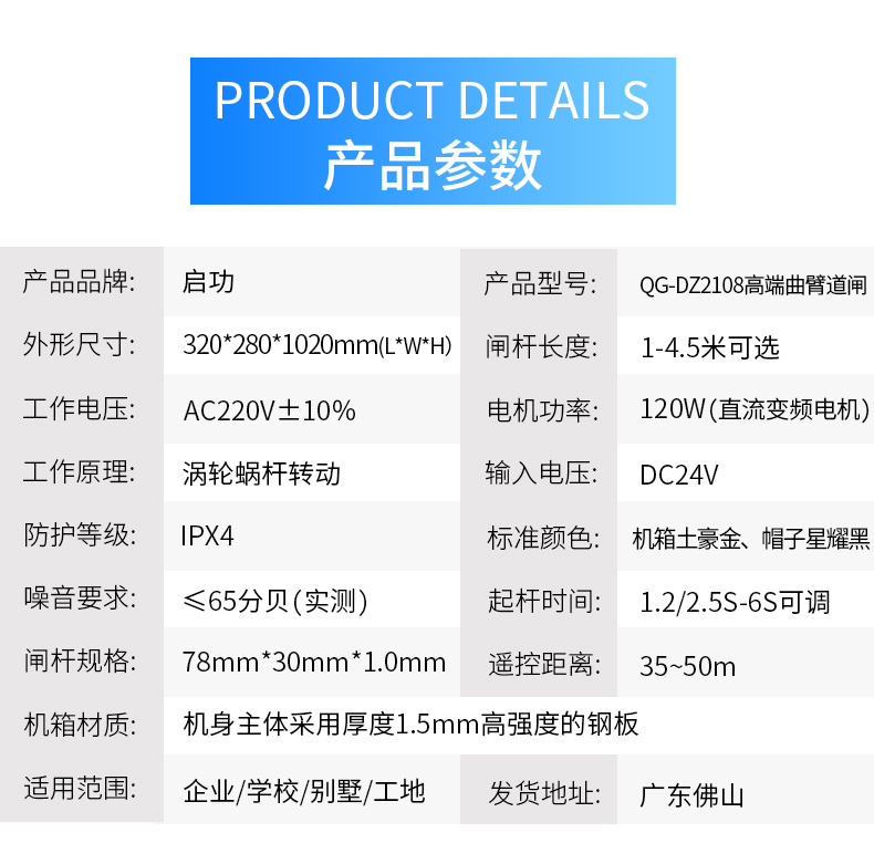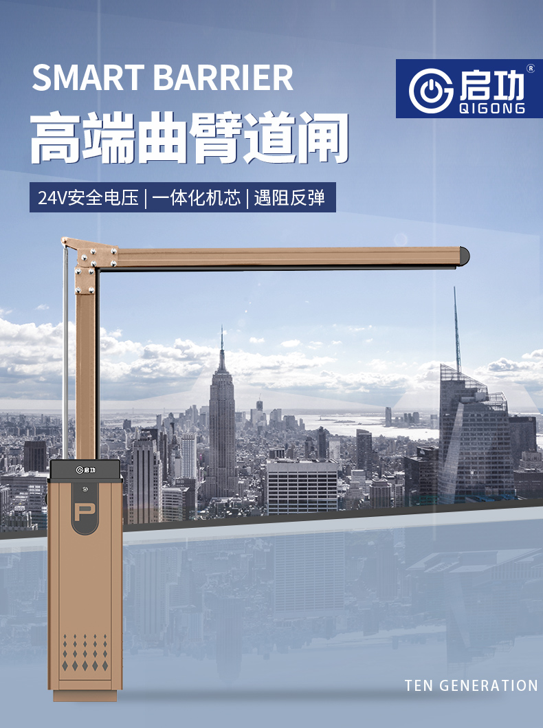 启功QG-DZ2108 曲臂道闸小区大门智能车牌识别系统无人值守闸机定制