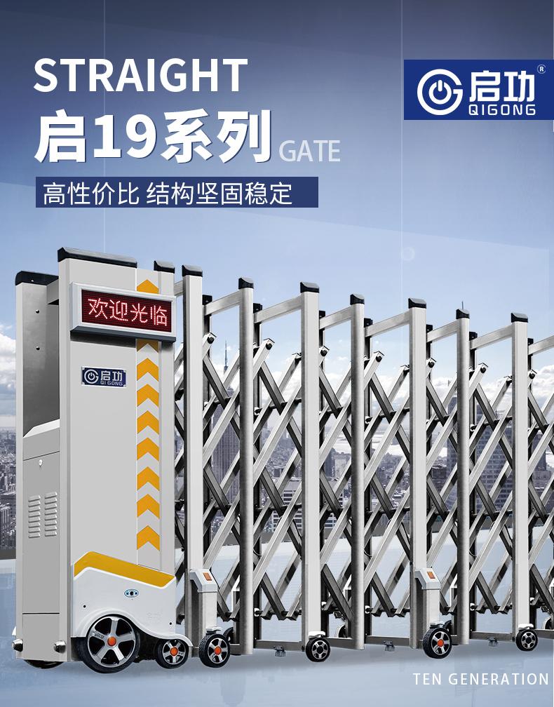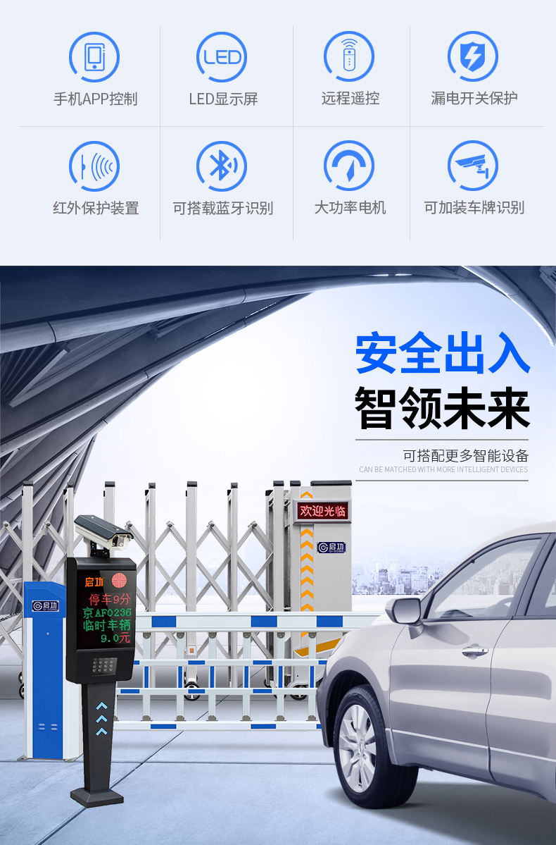 启功QG新款启19-A2工厂小区别墅智能车牌识别电动伸缩大门门排