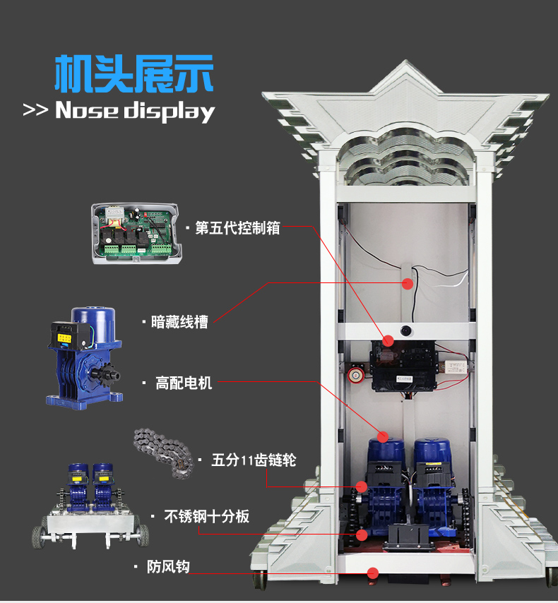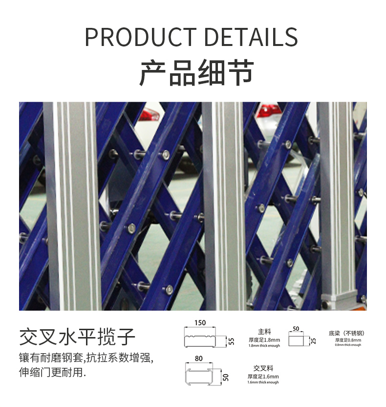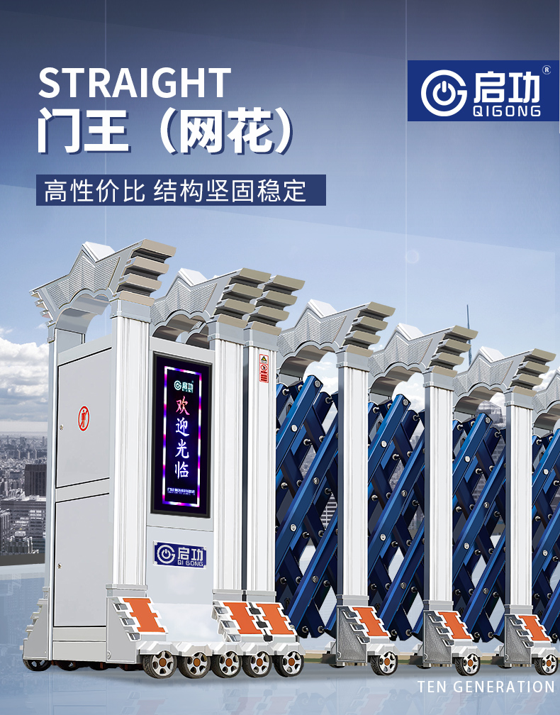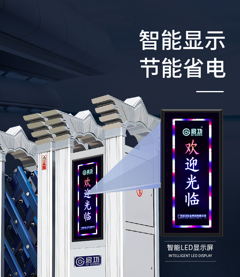 启功铝合金交叉门王QG-L3740智能伸缩门学校电动门可加装车牌识别