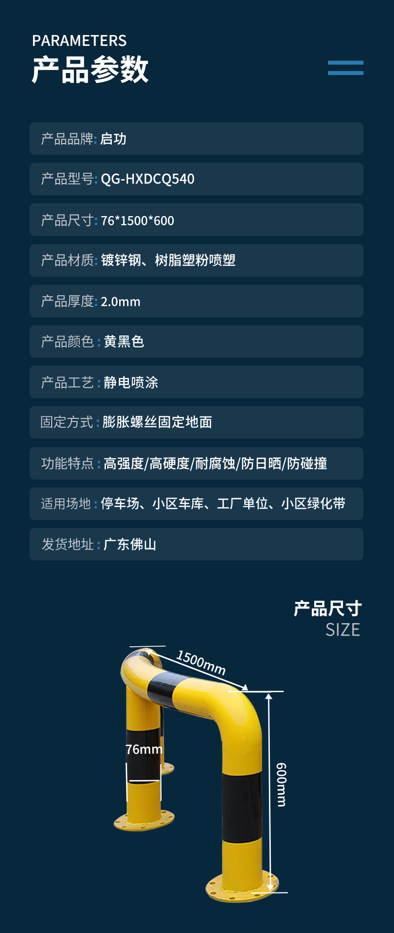 启功QG-HXDCQ540(76*1500*600*2.0)弧形挡车器一个