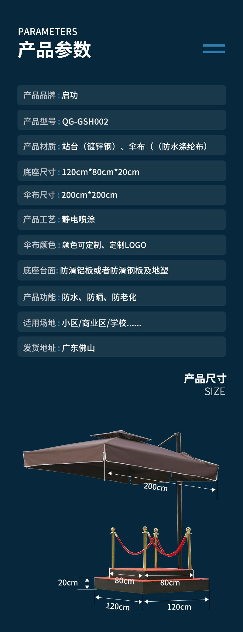 启功岗伞120*80*20 2米 QG-GSH002一个