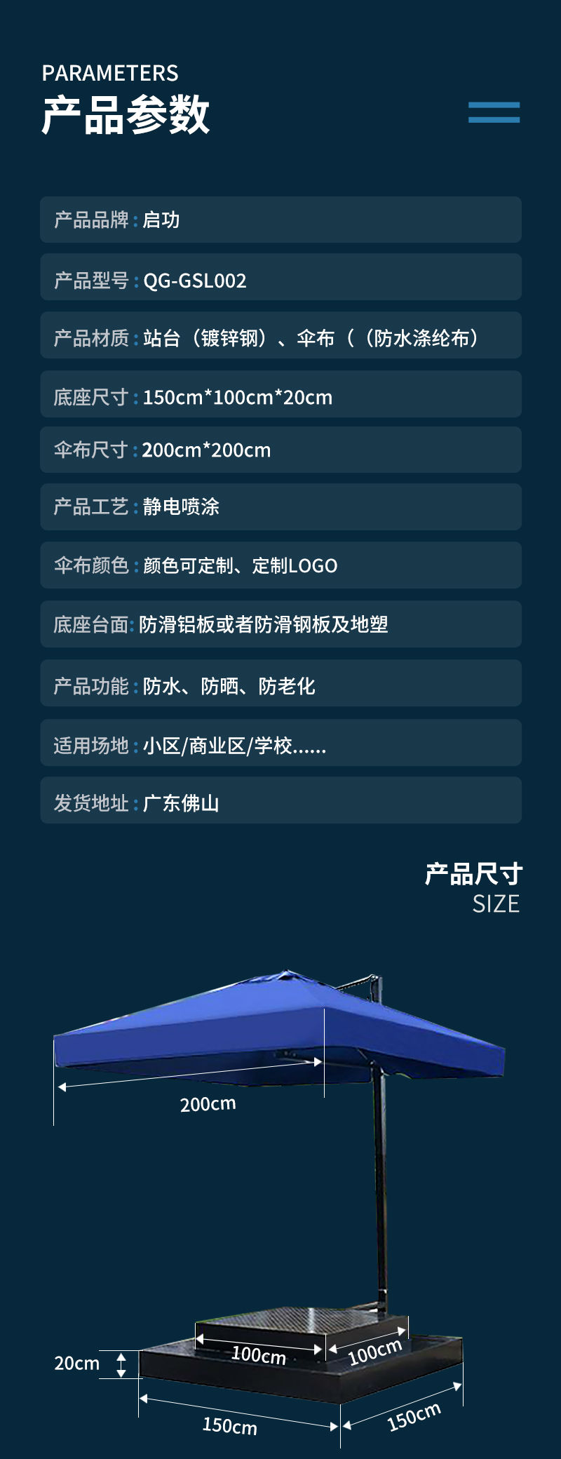 启功岗伞150*100*20 2米 QG-GSL002一个