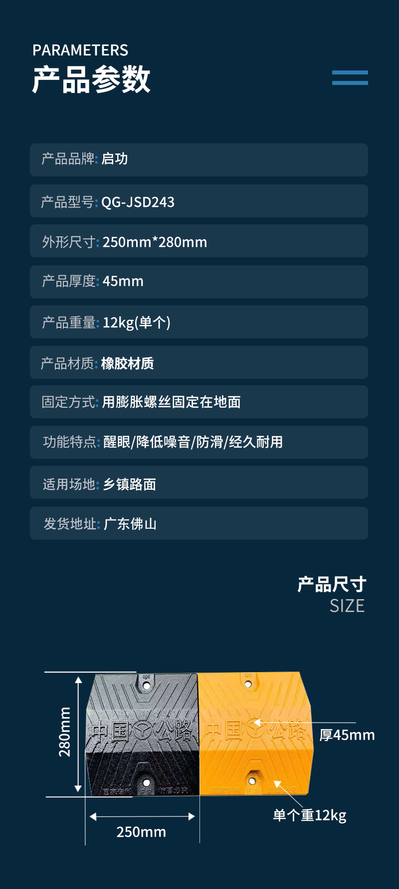 启功QG-JSD243铸钢减速带250*280*45(梯形)一米