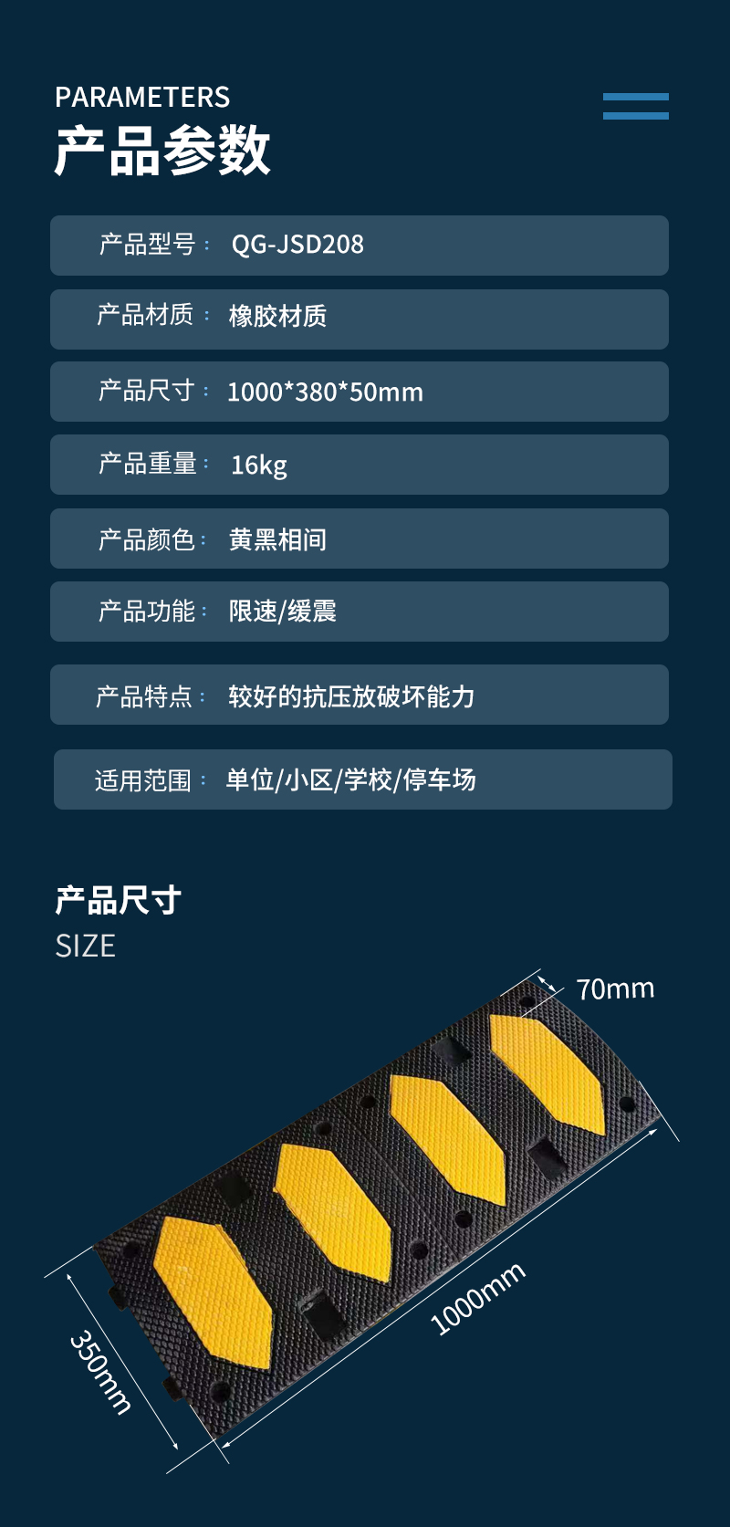 启功橡胶减速带1000*380*50 QG-JSD208一米
