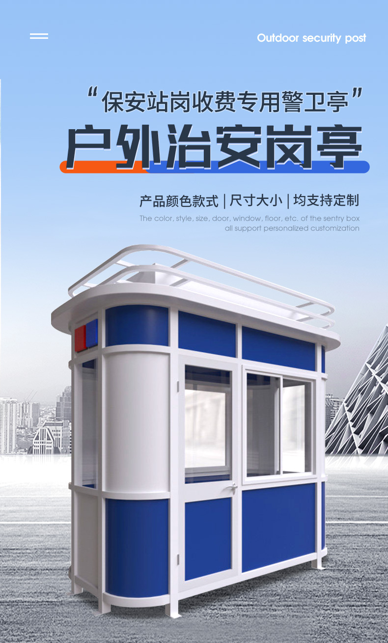 启功QG-GT1680治安亭钢结构不锈钢值班岗亭定制1.8*1.8*2.8m一套
