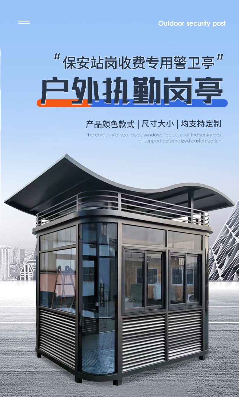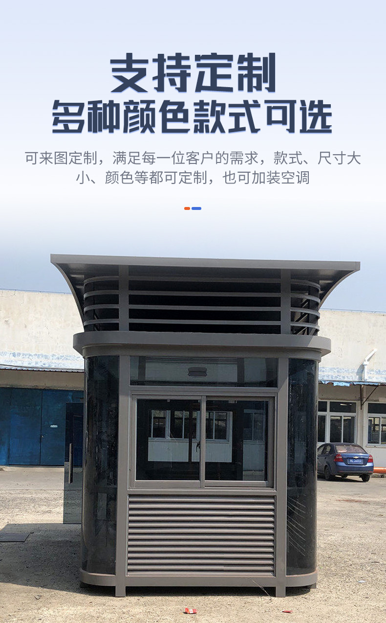 启功QG-GT1681钢结构岗亭不锈钢门卫亭治安亭1.8*1.8*2.8m一套