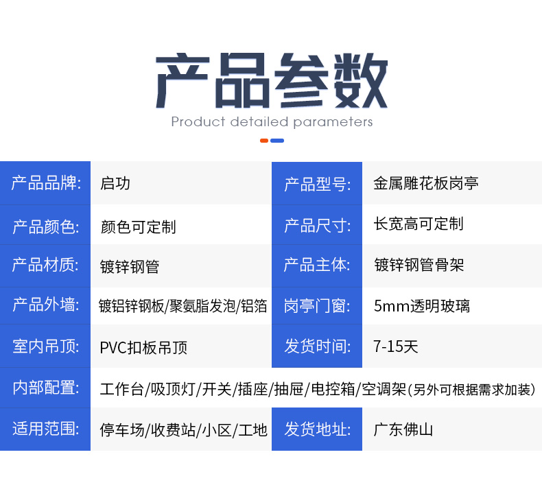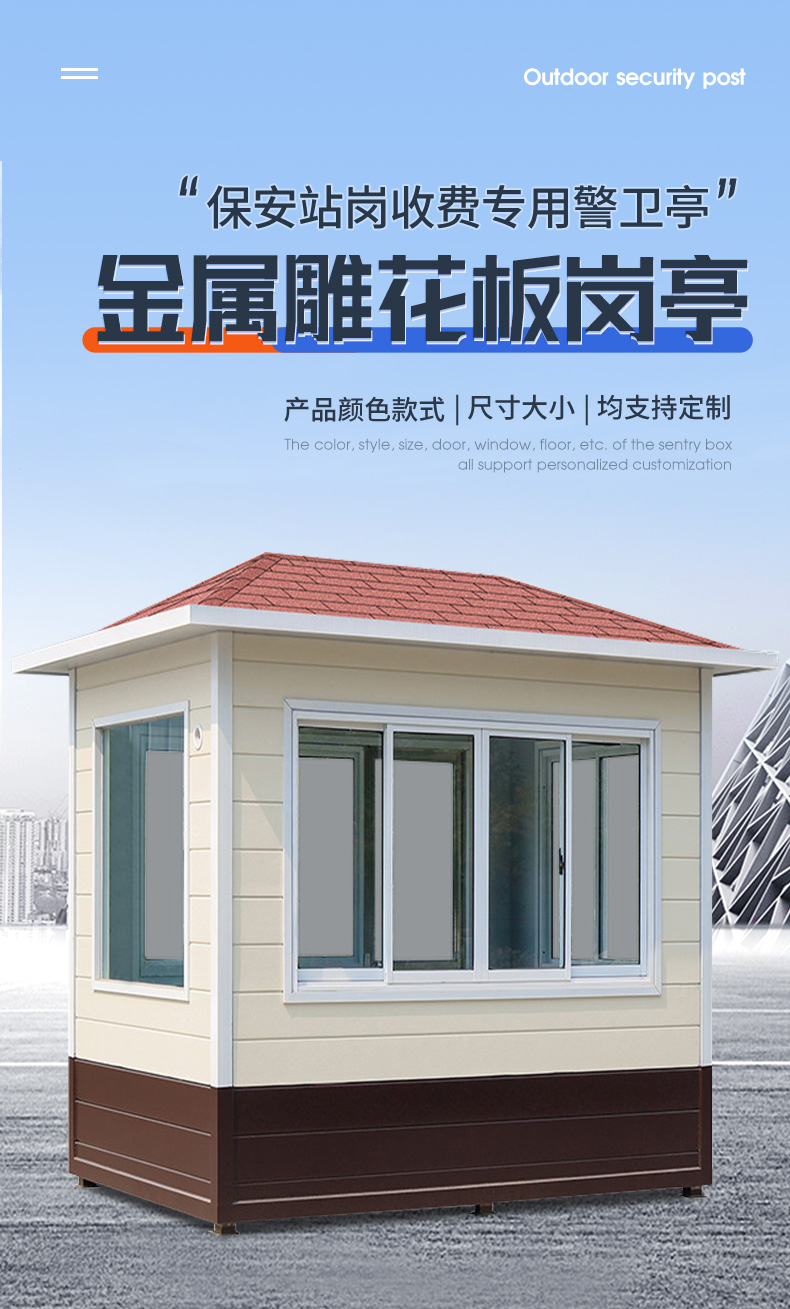 启功QG-GT1682金属雕花板岗亭钢结构治安亭定制门卫亭1.8*1.8*2.8m一套