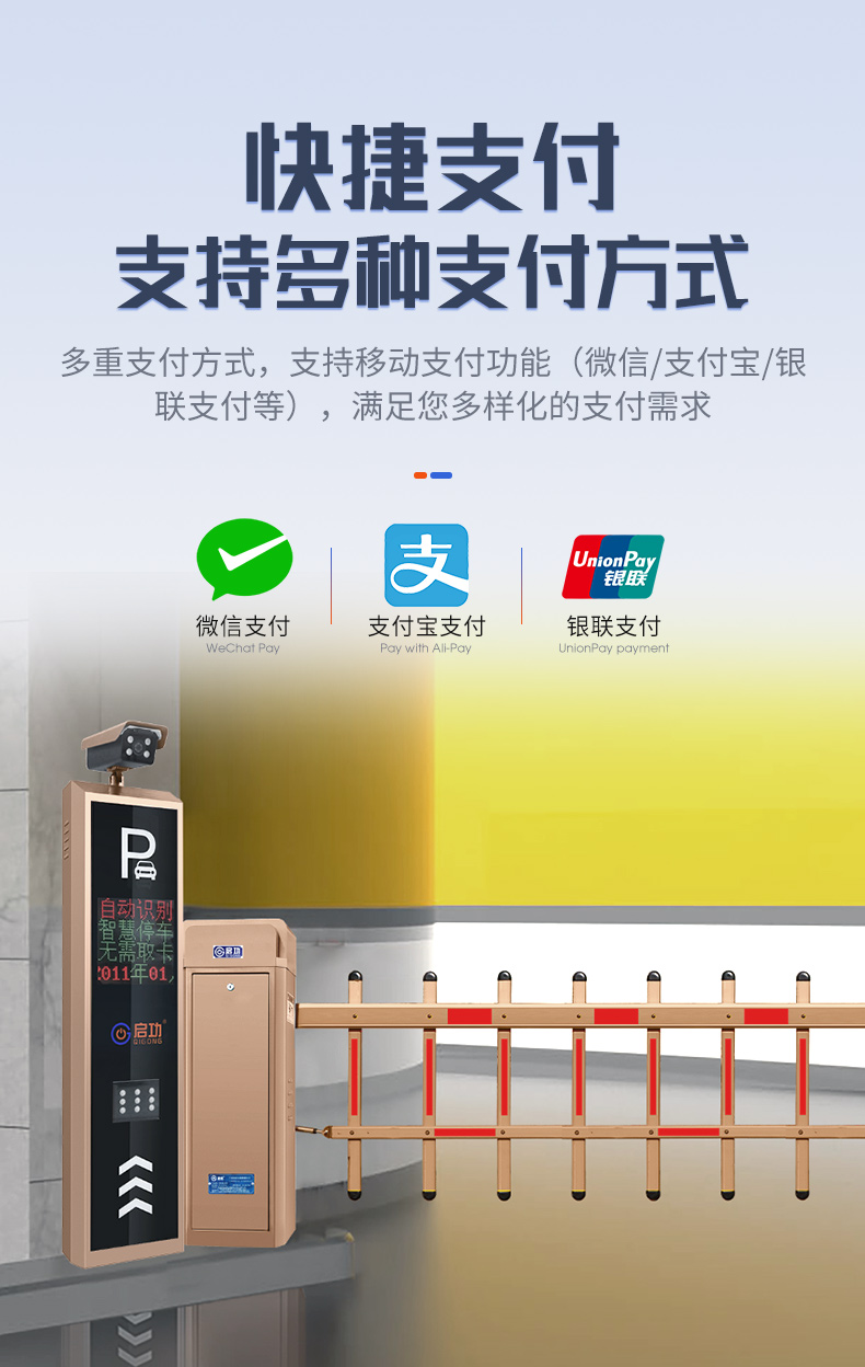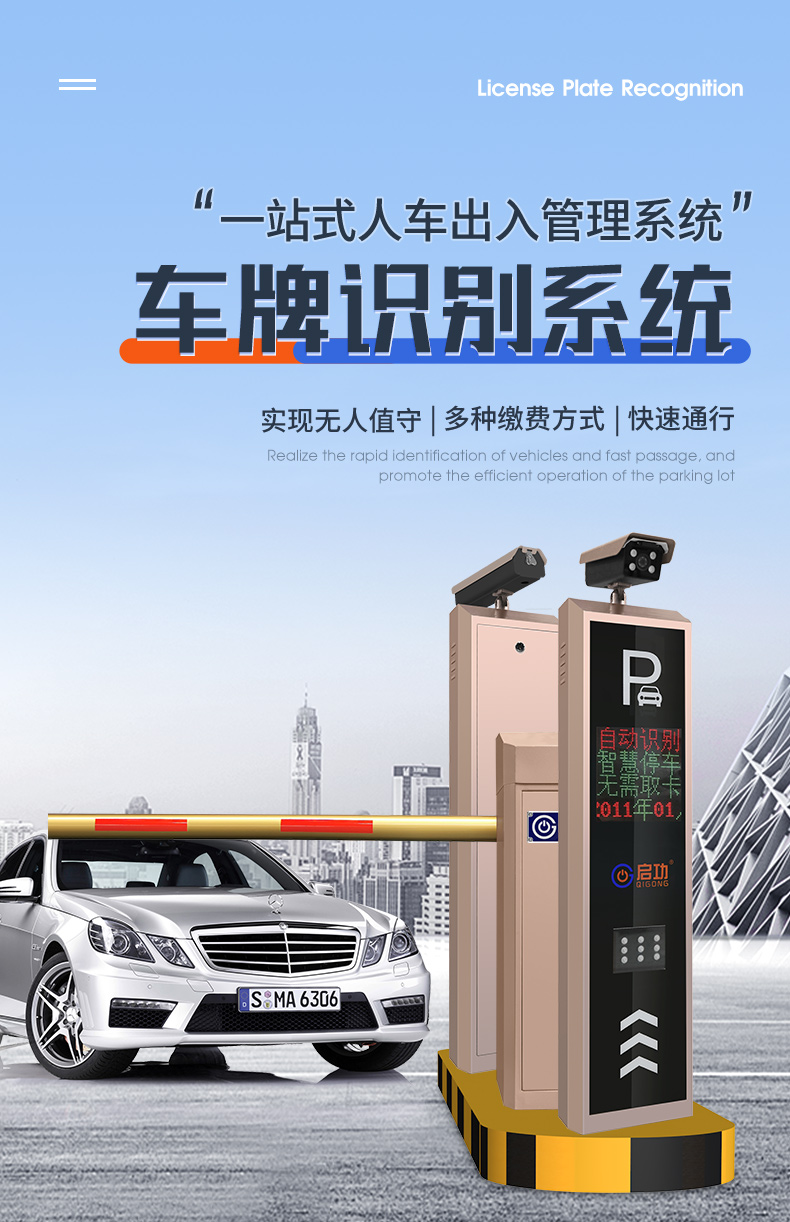 启功QG-CP210智能车牌识别系统停车场收费管理无人值守道闸定制