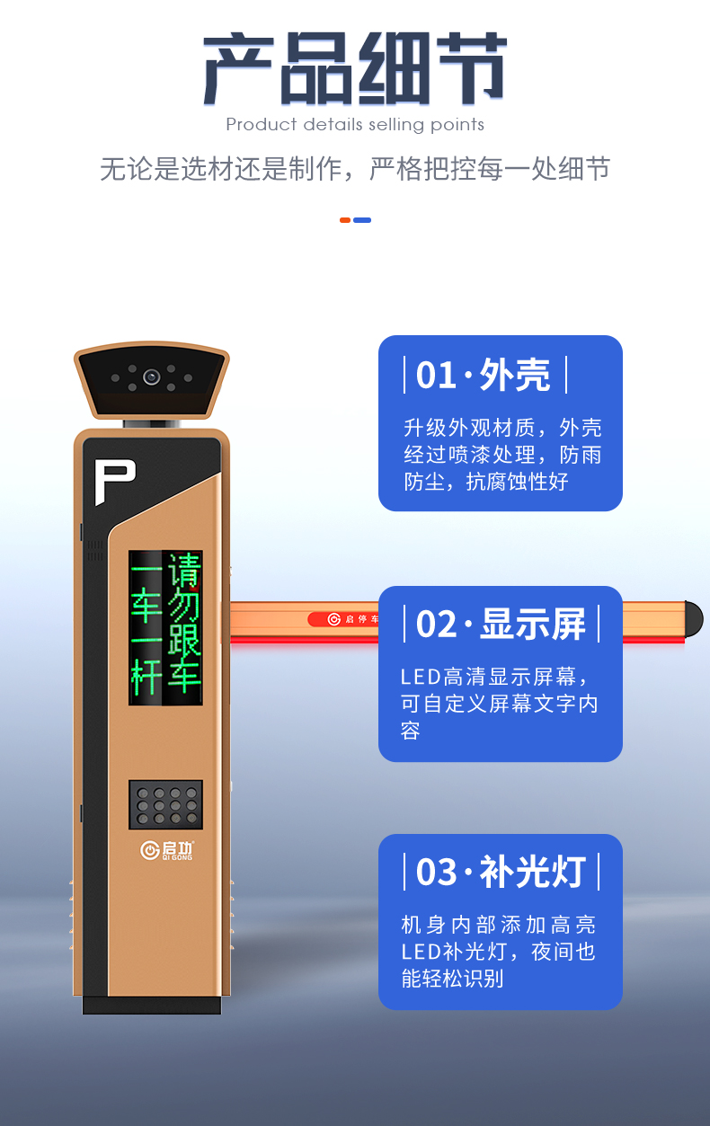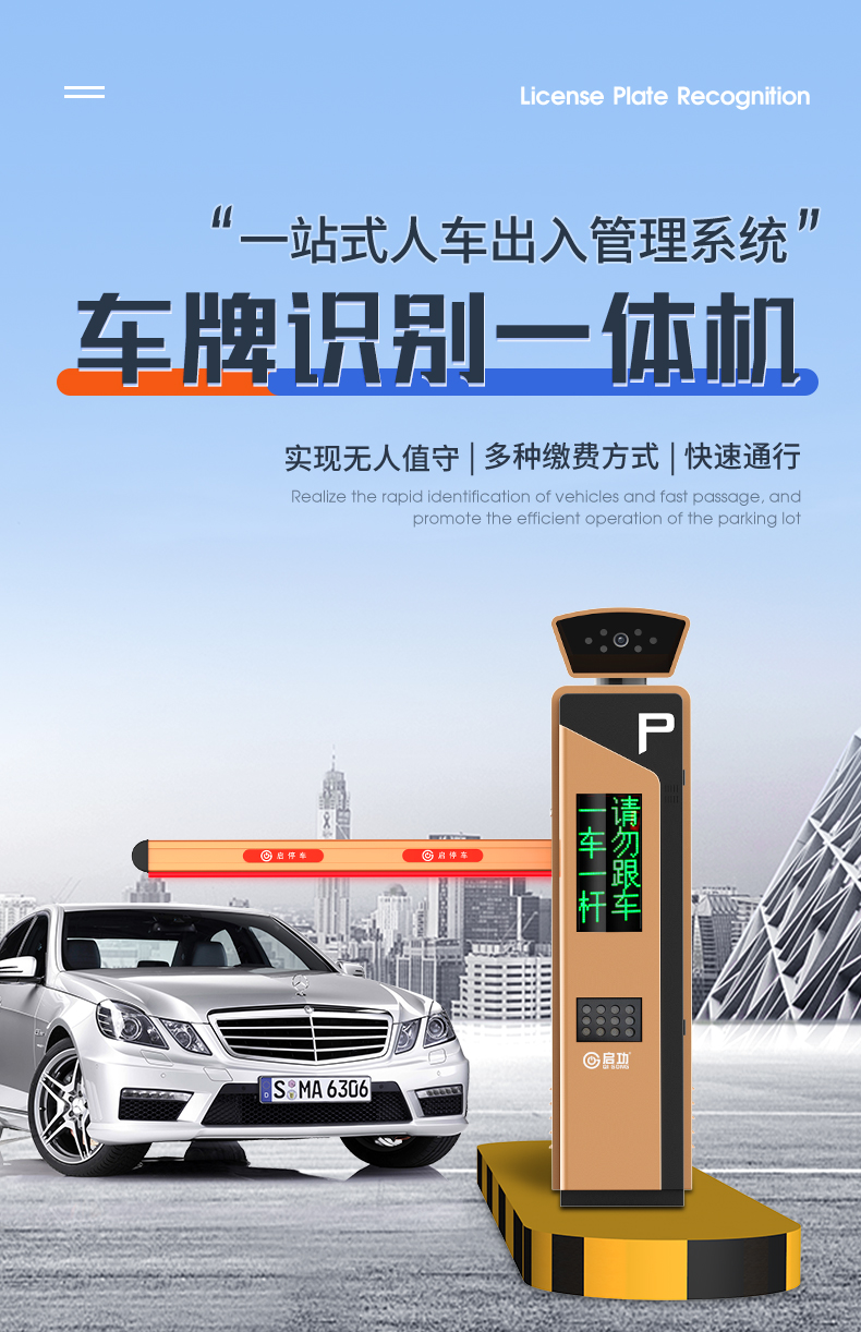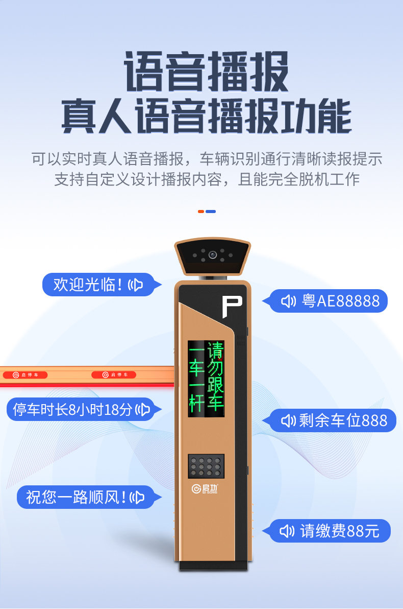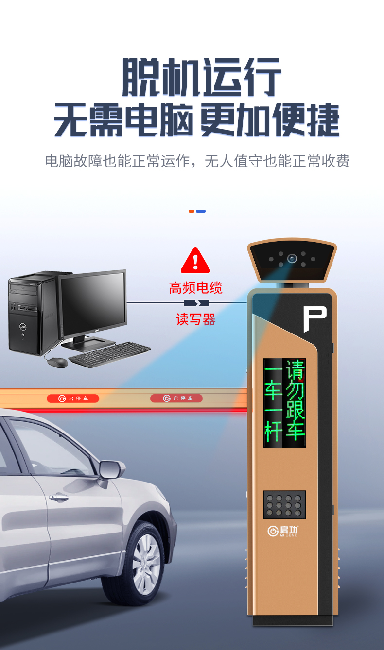启功QG-CP2108小区学校大门智能车牌识别道闸一体机脱机运行