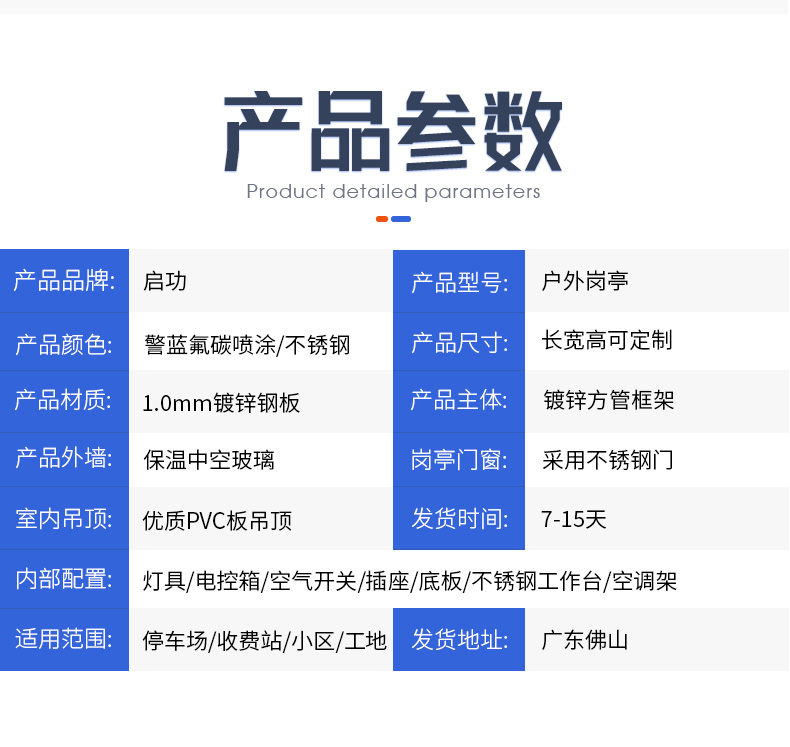 启功QG-GT1689钢结构站岗岗亭门卫亭可定制1.5*1.5*2.8一套