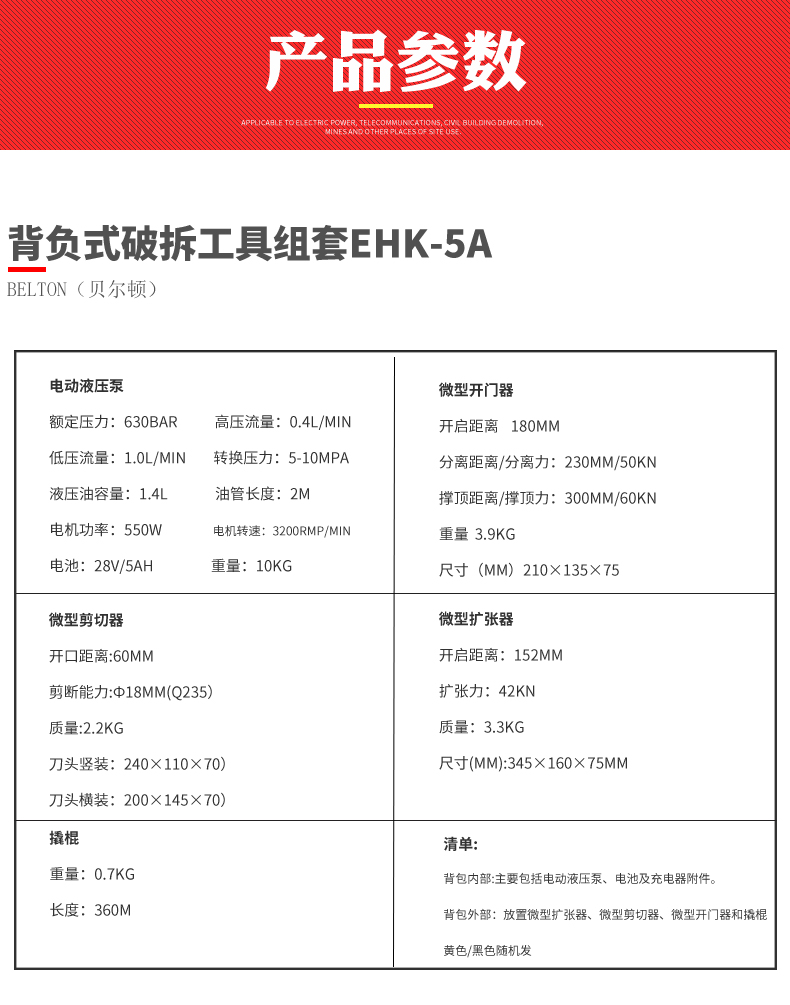 贝尔顿背负式电动破拆工具组EHK-5A电动液压开门器消防救援装备