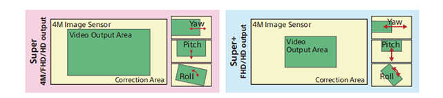 因此诞生出了“Super”以及“super+”两种防抖模式,其中“super+”比“Super”模式更大的修正区域,能抑制并减少更多的抖动。