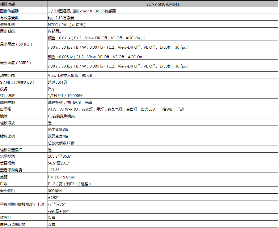- 型号:SONY SNC-EM641 摄像机