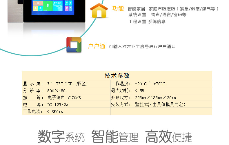 新款安居乐数字可视对讲门铃7寸彩色触摸屏室内分机话机楼宇对讲