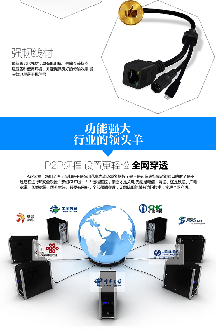 4.功能:支持完整的TCP/IP协议,内置WEB服务器,支持浏览器访问;PTZ控制功能:电子云台功能,支持众多编解码协议。具有ONVIF协议,兼容主流NVR;支持DHCP:用户可用DHCP(动态主机配置协议)建立IPCAM的工作环境。