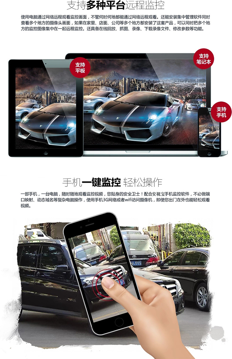 2.采用优秀的H.264 视频压缩算法,轻松实现高清晰图像的低速网络带宽传输。